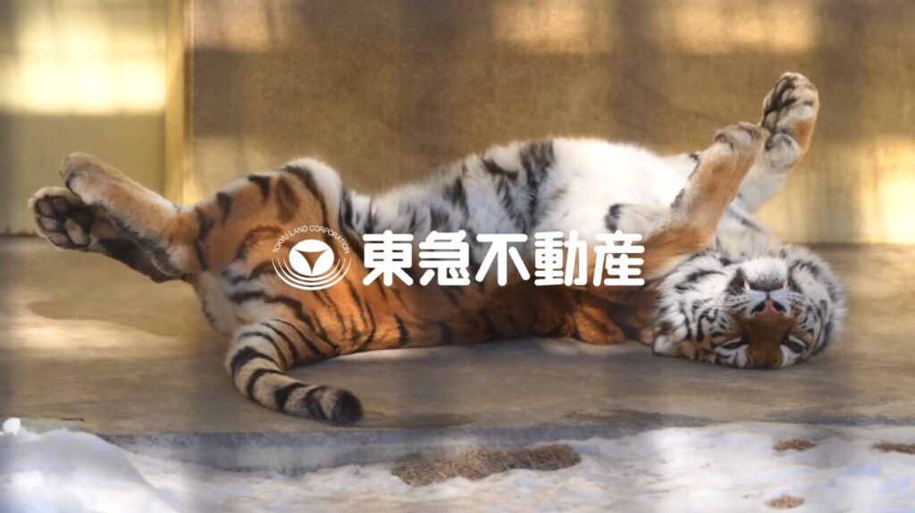 本コンテンツは、「タクシーCMをお楽しみの皆さまへ それはさておき 動物」という導入から始まり、トラがゴロンと寝転がる姿など動物たちのシュールで愛らしい映像が流れます。